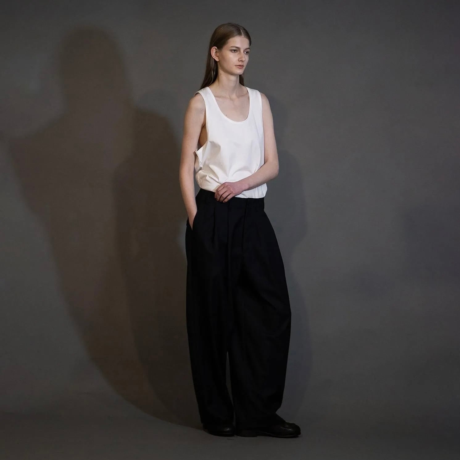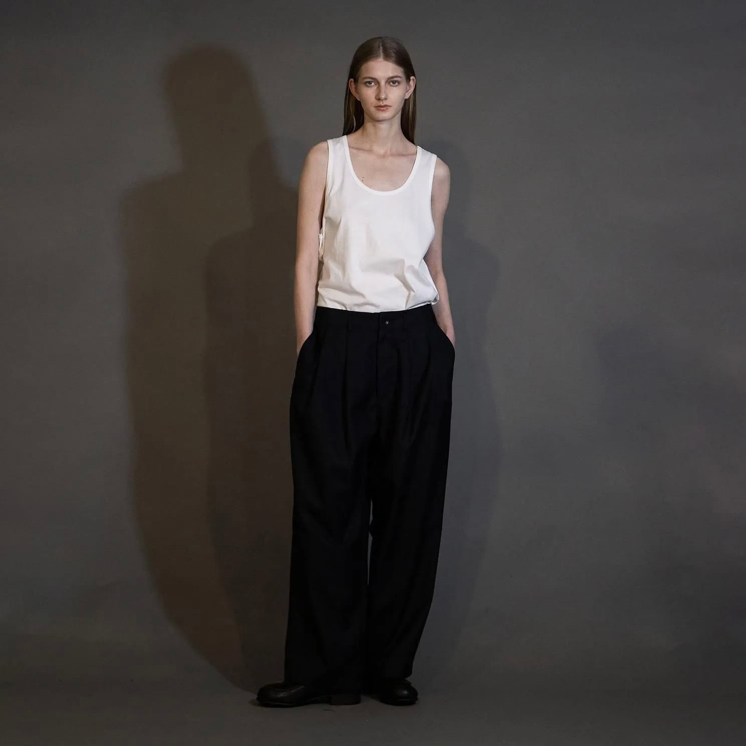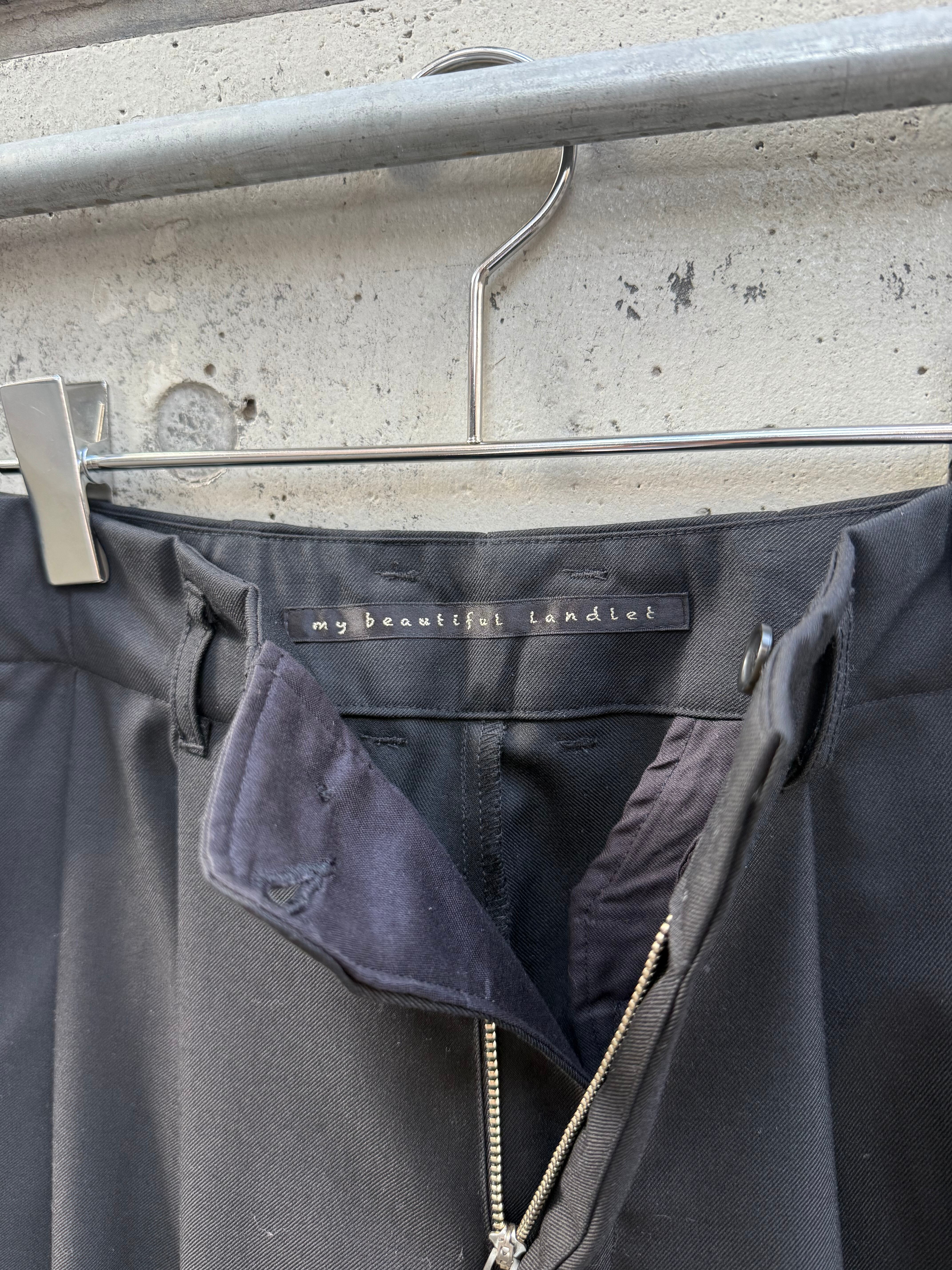 『my beautiful landlet』MACHINE WASHABLE WOOL TUCK WIDE PANTS / BLACK