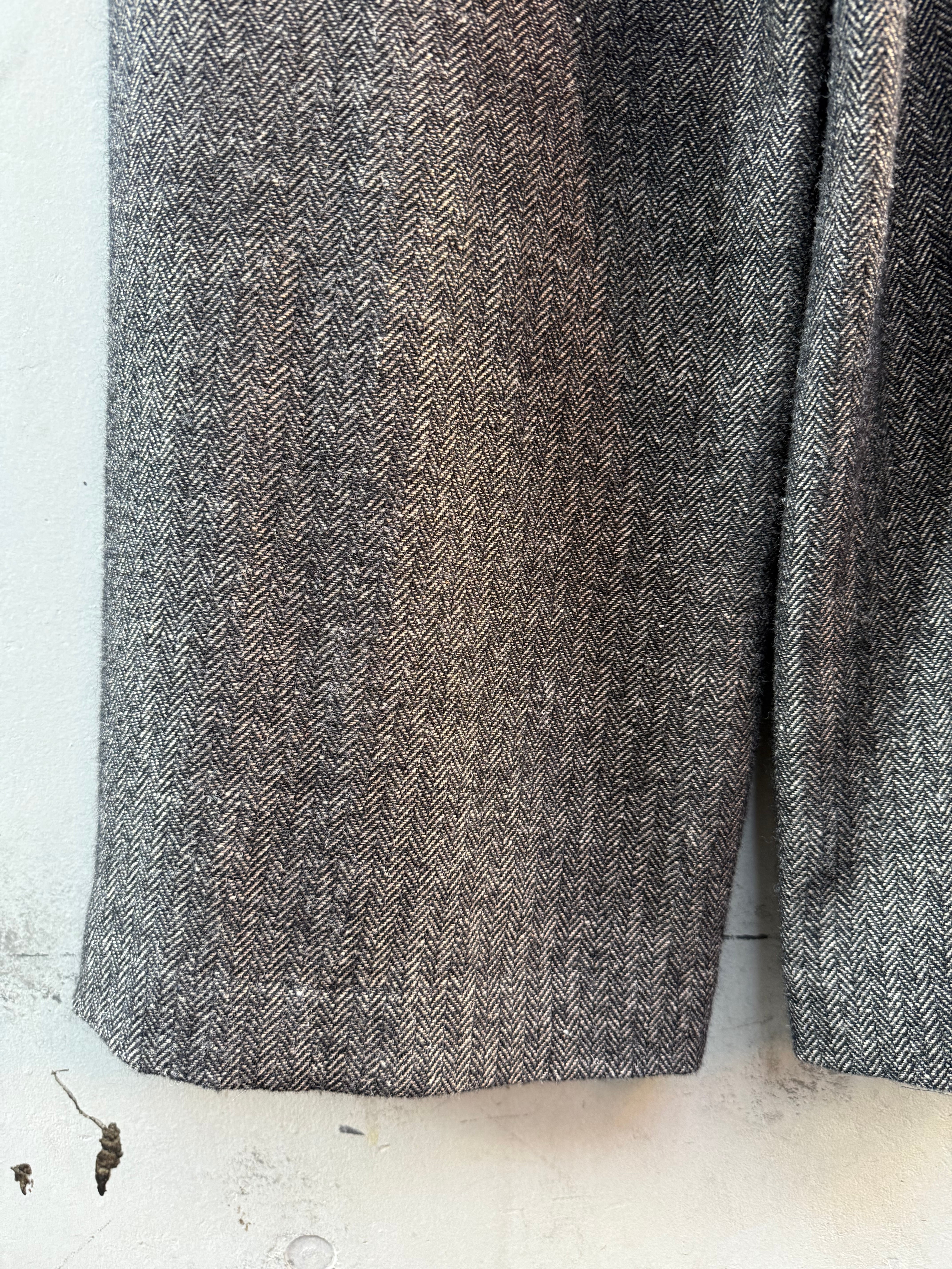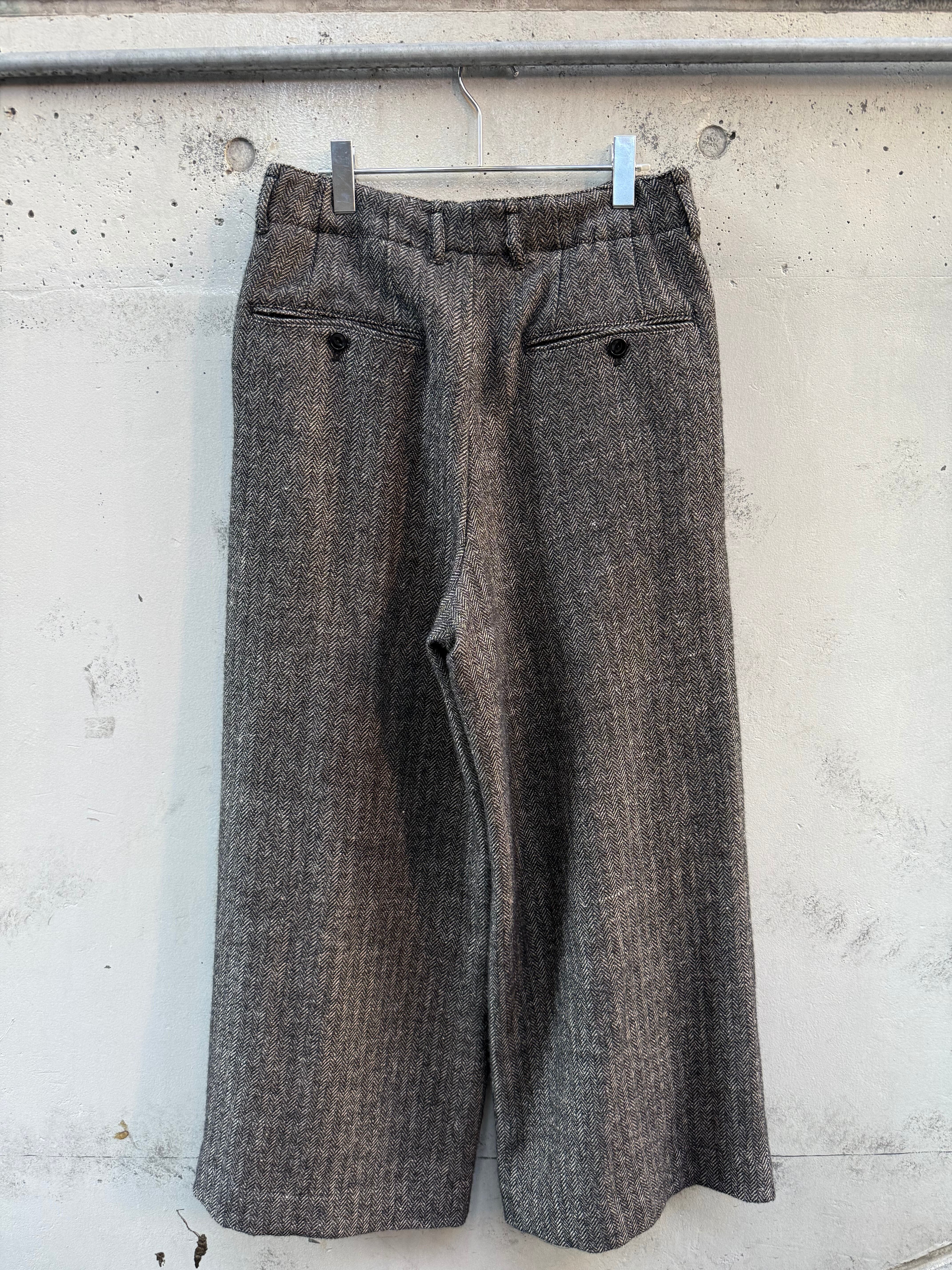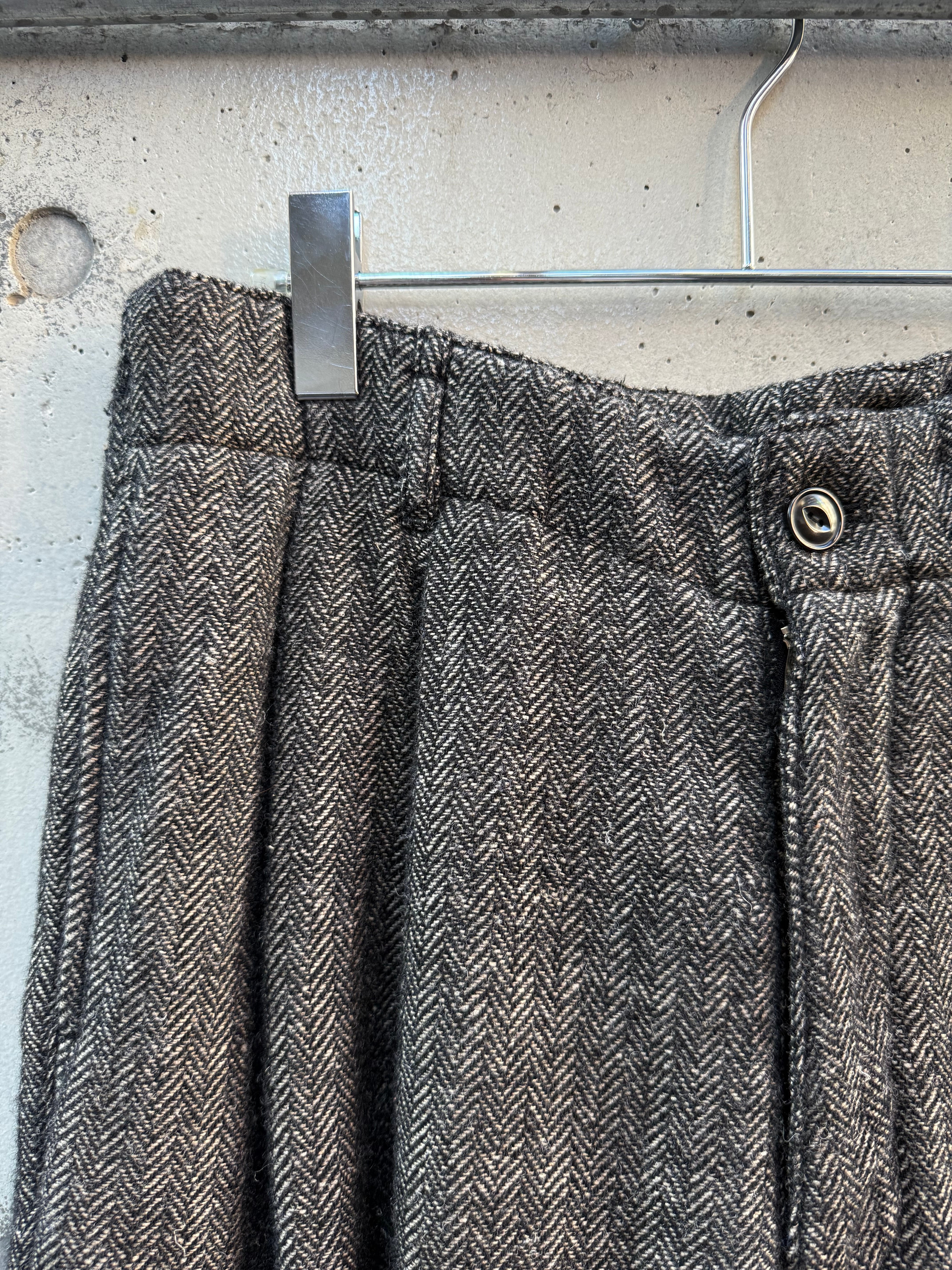 『VOAAOV』WOOL LINEN HERRING BONE Tuck Wide Pants / BLACK