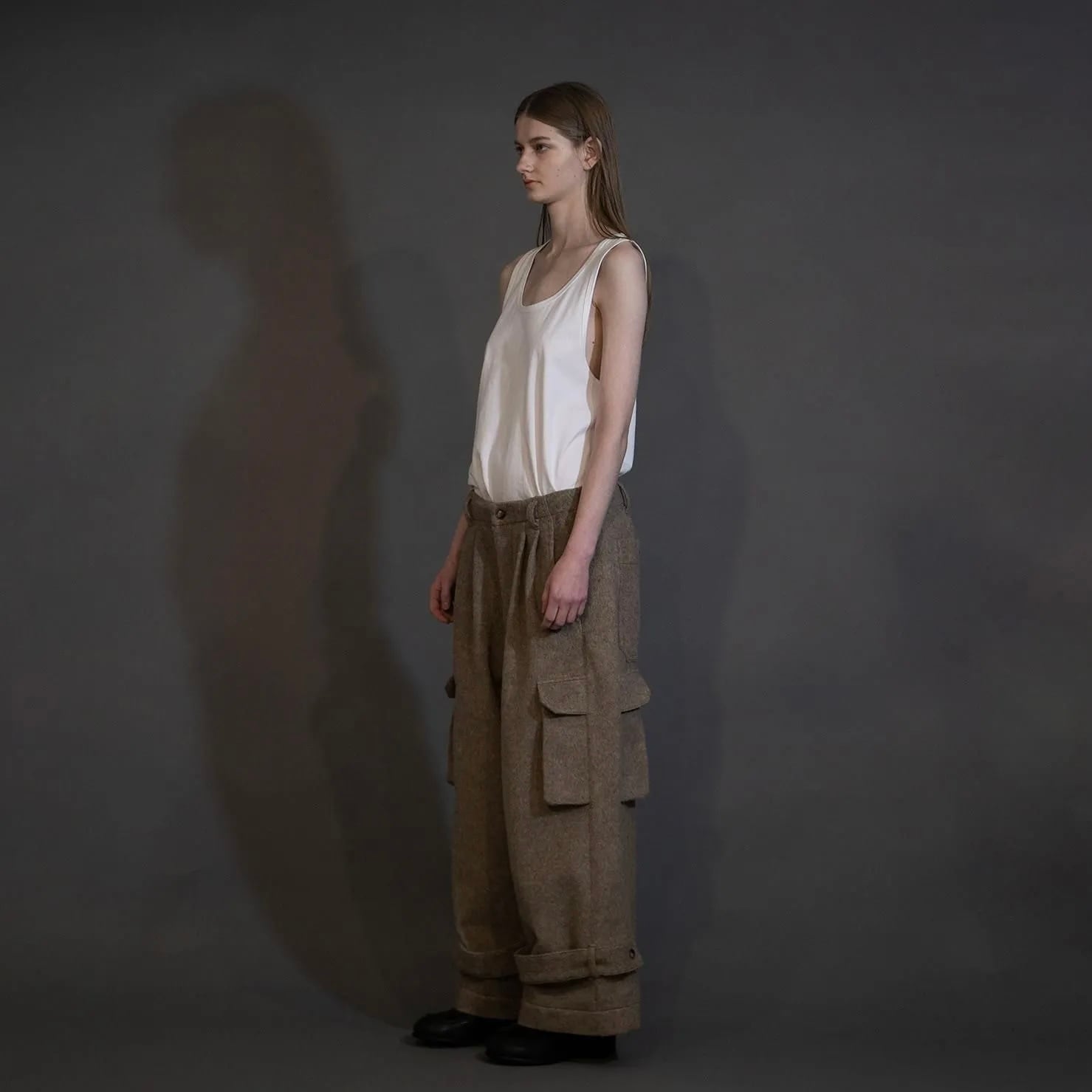 『my beautiful landlet』ALPACA SHAGGY WIDE CARGO PANTS / BLACK