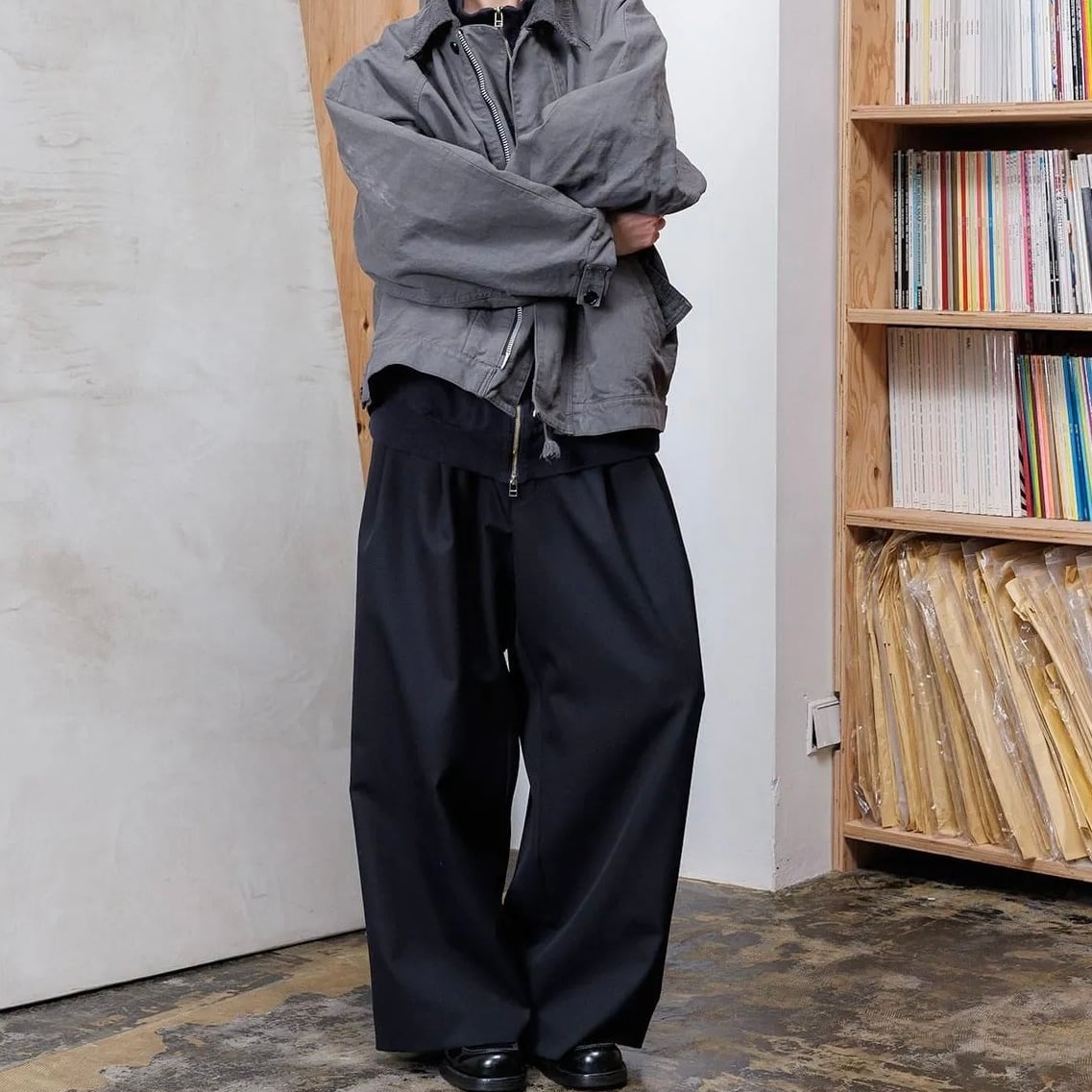 BISHU OLD WOOL GABARDINE Tuck Wide Pants / BLACK