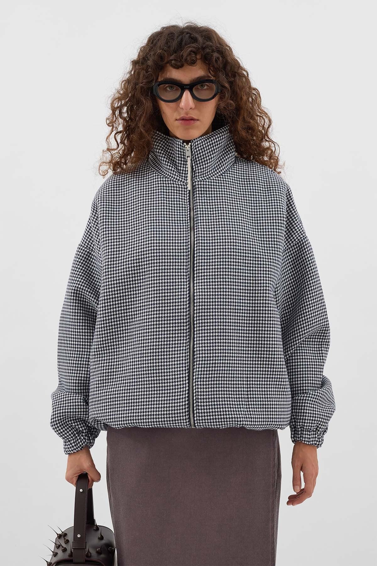 Oversized work jacket in dark blue & off white