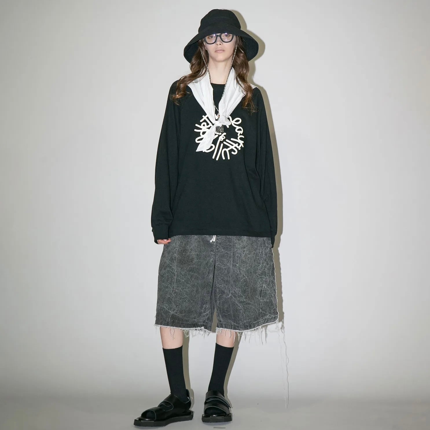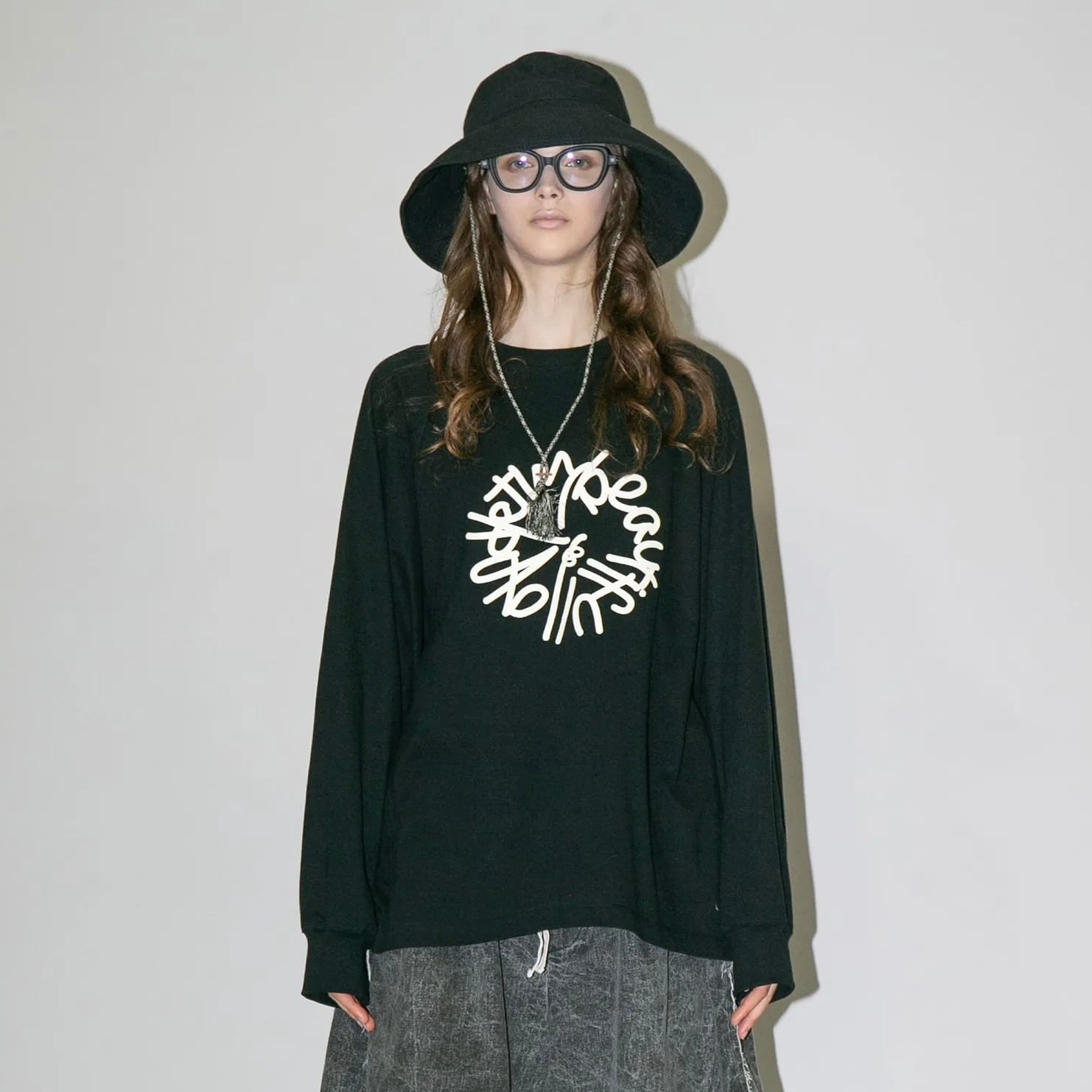 『my beautiful landlet』SUPIMA COTTON OVERSIZE RAGLAN L/S T-SHIRT - print / BLACK