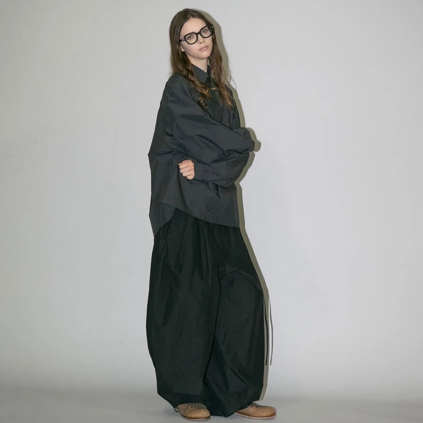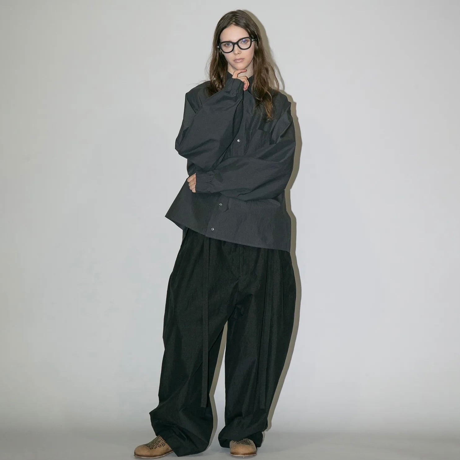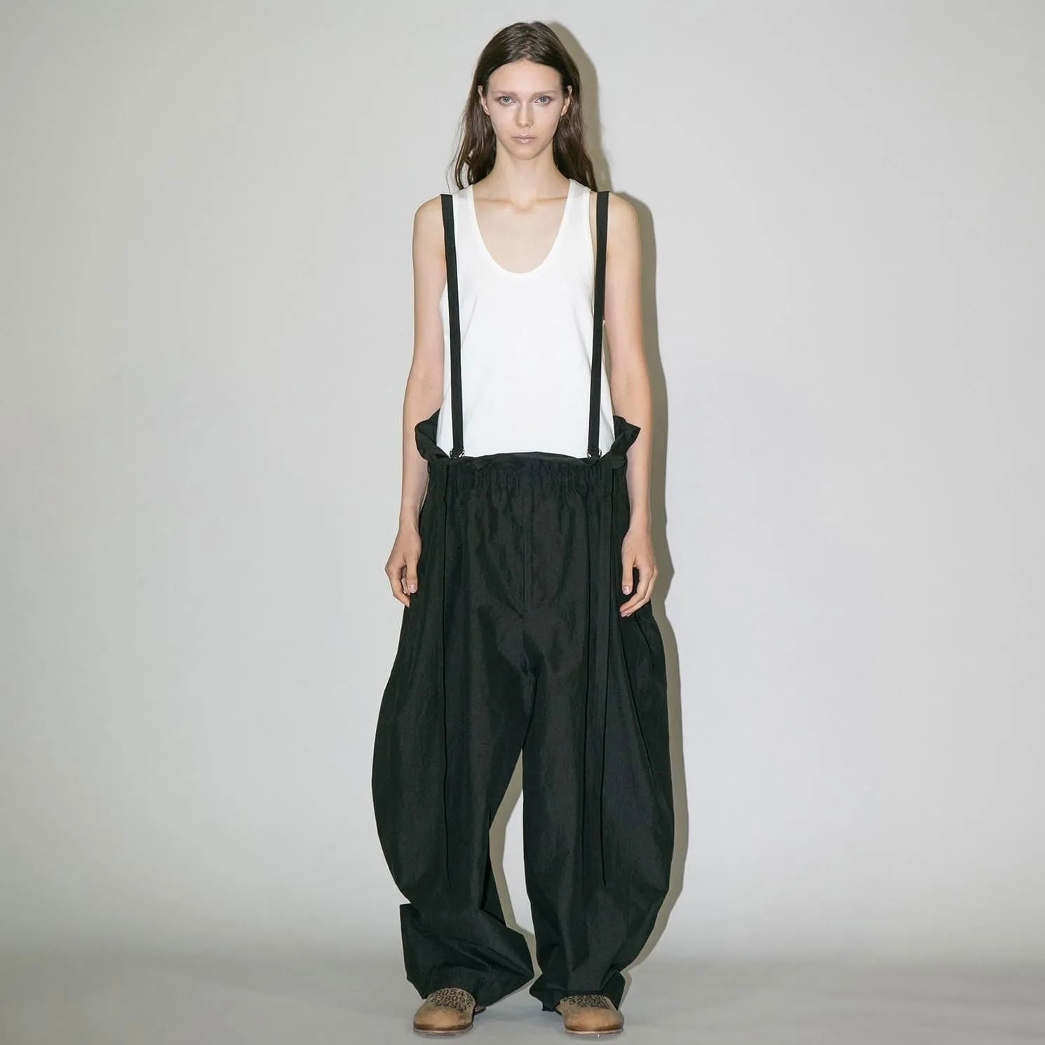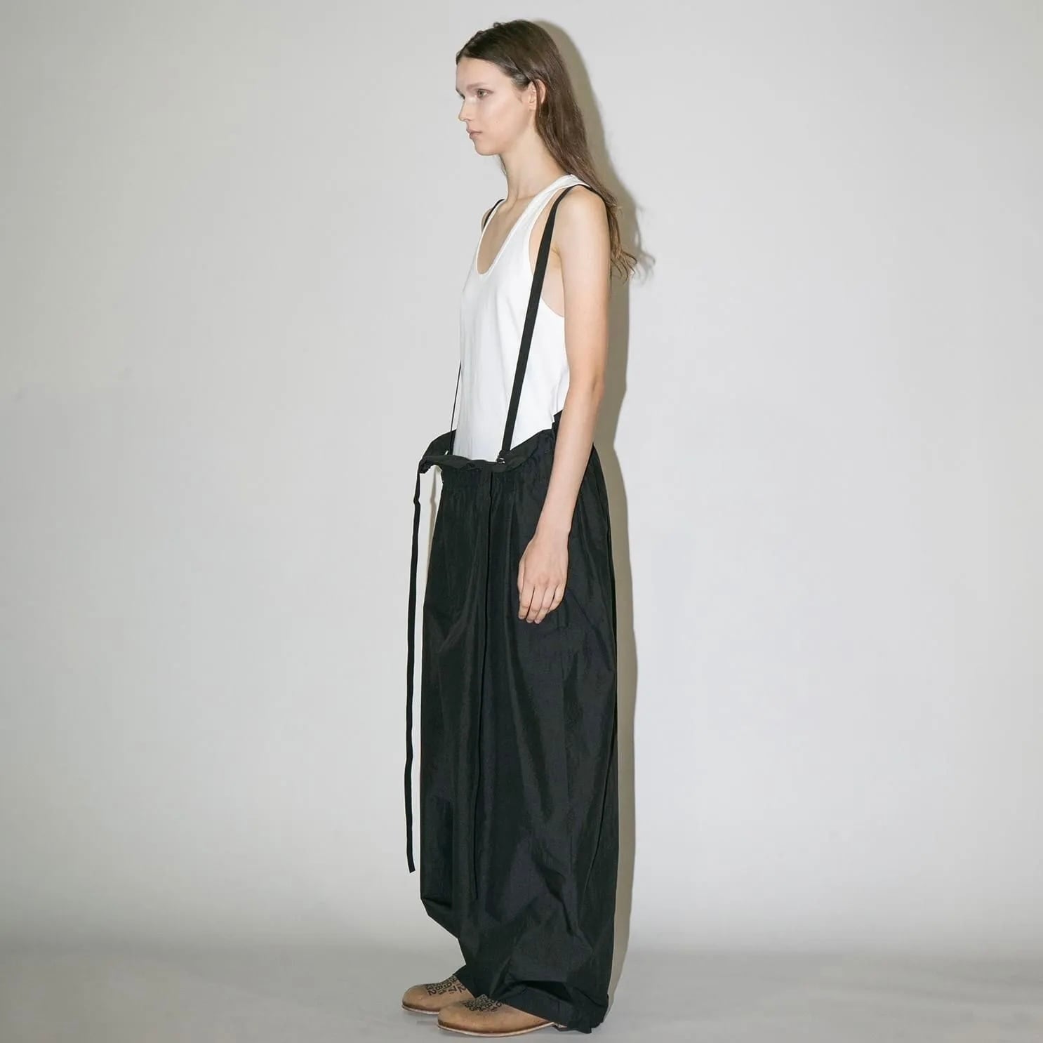 『my beautiful landlet』COTTON × RECYCLED NYLON WIDE SUSPENDER PANTS / BLACK