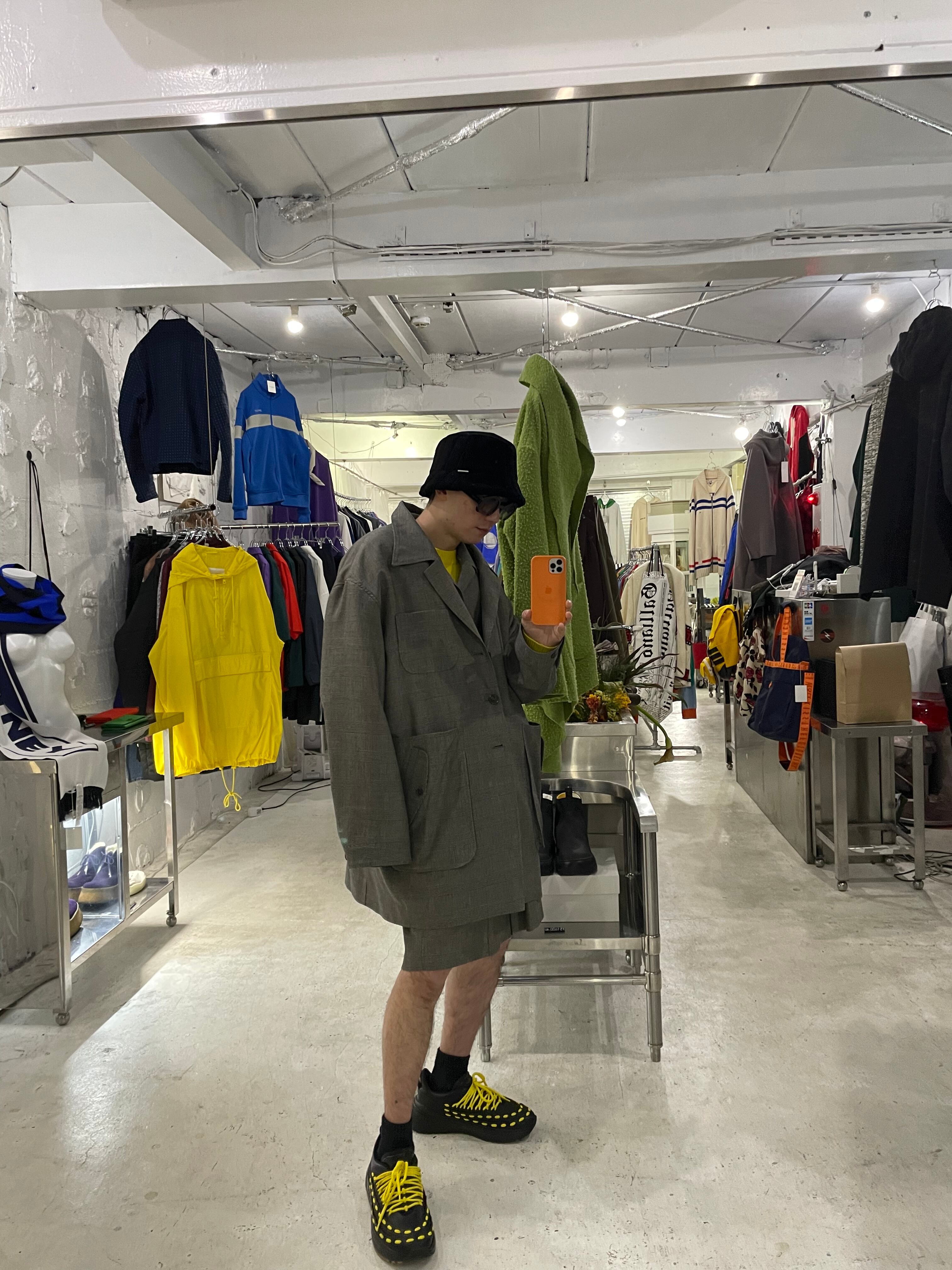 落ち感のあるルーズなジャケットはスタイリングのポイントに。